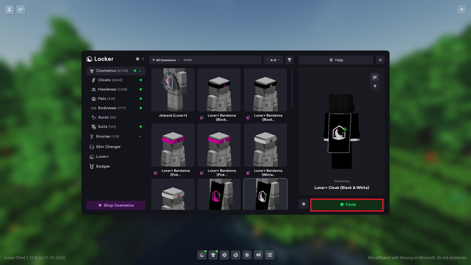 After you've purchased your desired Lunar Client Cosmetic, you will of course want to see it in-game. To do that, follow the instructions below!