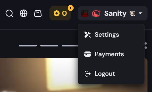 Step 2 – Open your account menu and go to Payments. Once logged in, confirm your username is correct in the top-right corner. Click your name/avatar to open the dropdown menu, then select Payments.