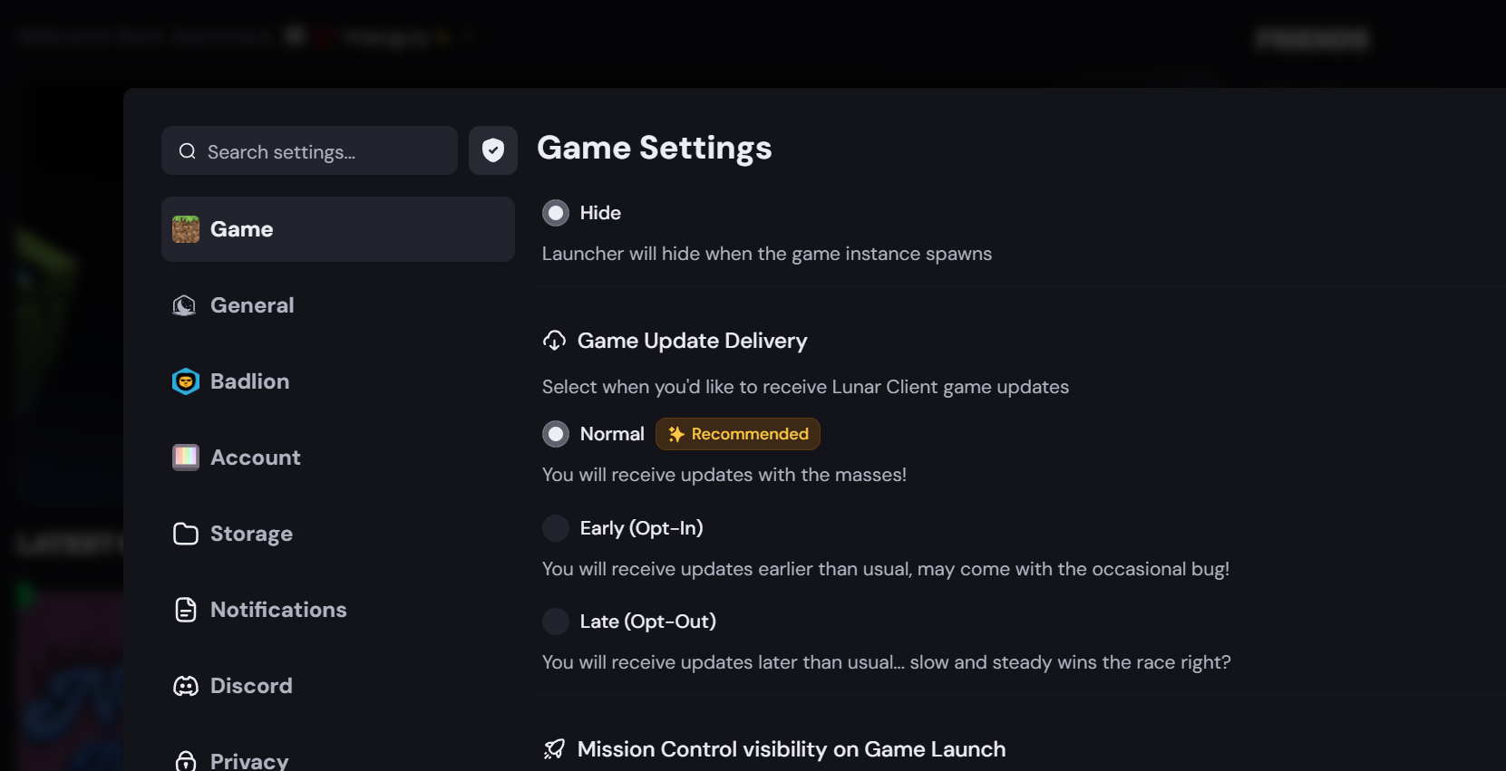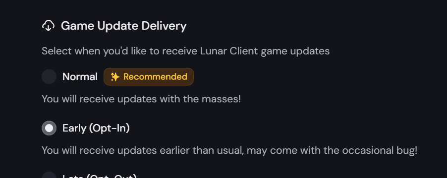 1. Open the Lunar Client launcher and navigate to the Settings page.